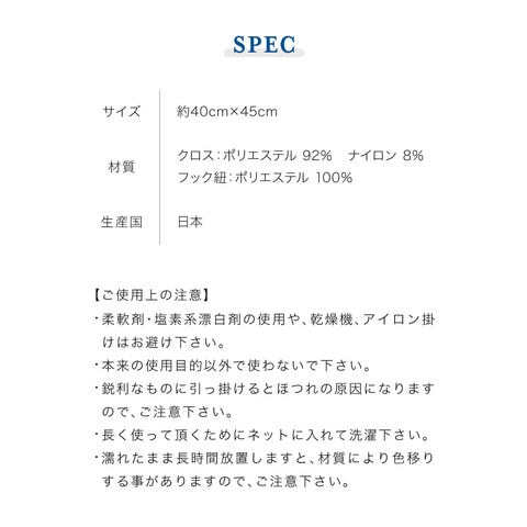 ・柔軟剤・塩素系漂白剤の使用や、乾燥機、アイロン掛けはお避け下さい。