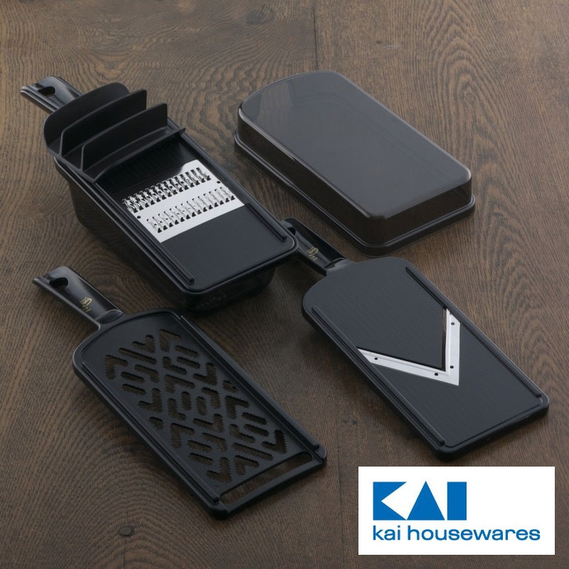貝印 関孫六 調理器セット 多機能スライサー 日本製 KAI DH3333 ガード付き レギュラー おろし器 千切り器 Vスライサー 指ガード 受け皿 コンパクト収納 野菜スライサー【送料無料】