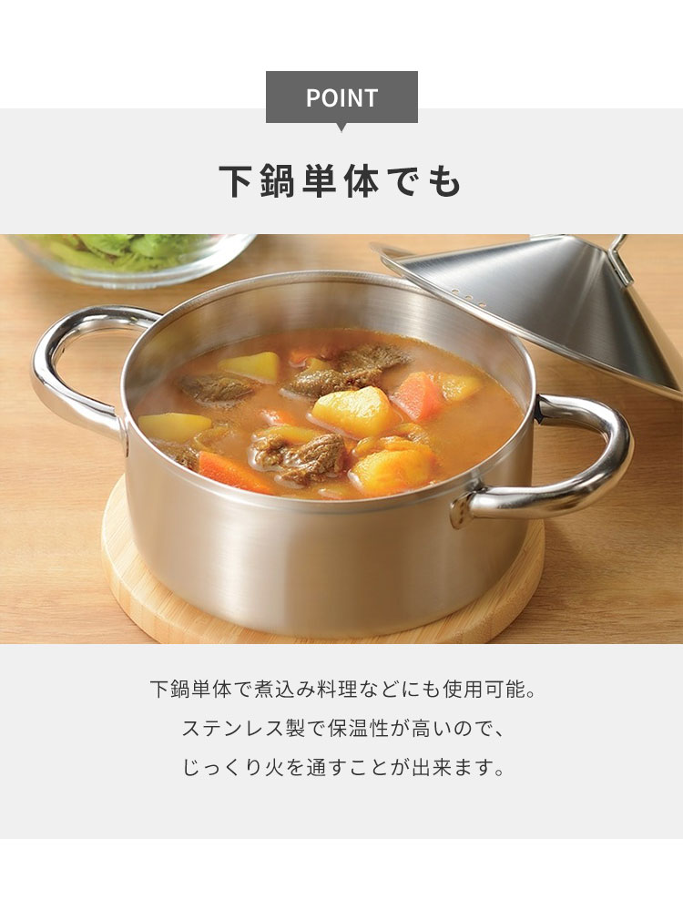 2段でも、下鍋単体でも使用でき、便利に使いこなせます。