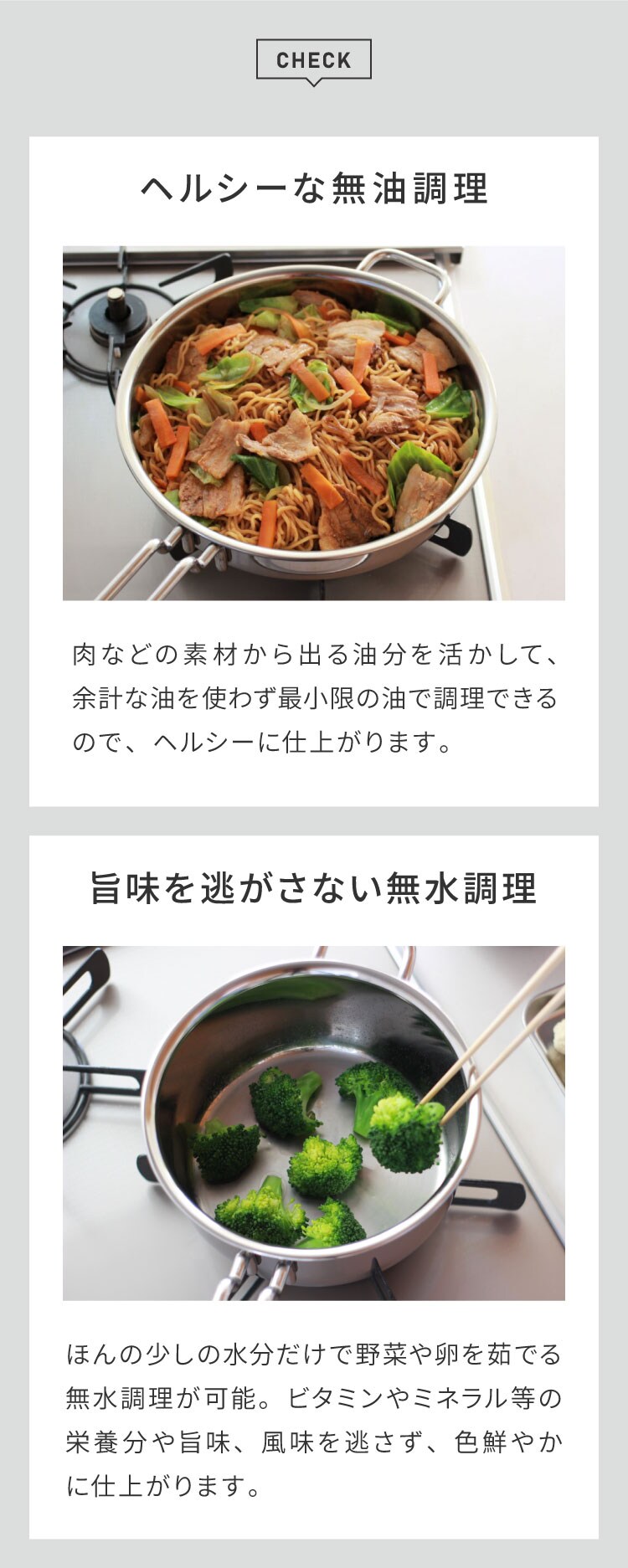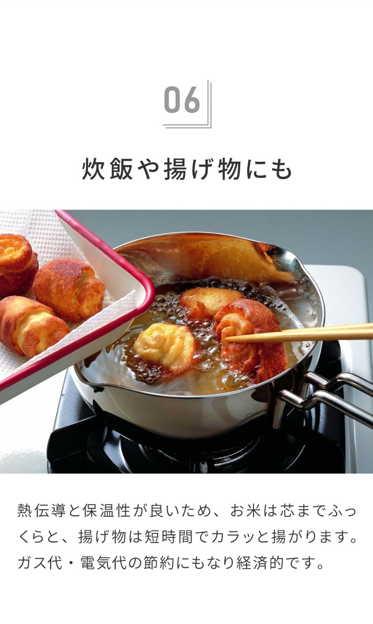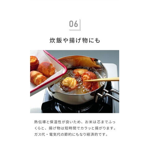 煮る、茹でる、揚げる、機能的な使い勝手のよい万能鍋です。