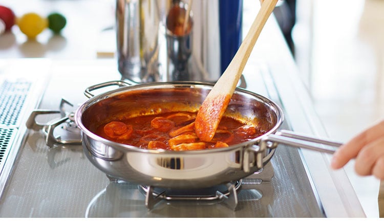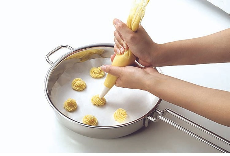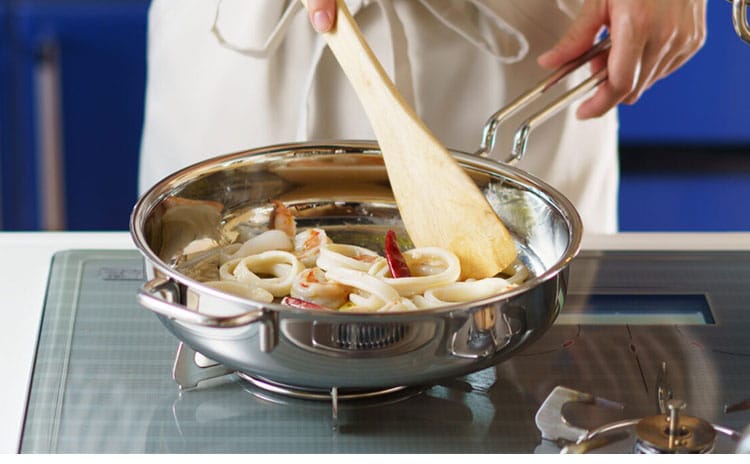 フライパン+煮込み鍋の機能を果たします。油分の持つ素材の調理に適し、無油・無水調理が可能。