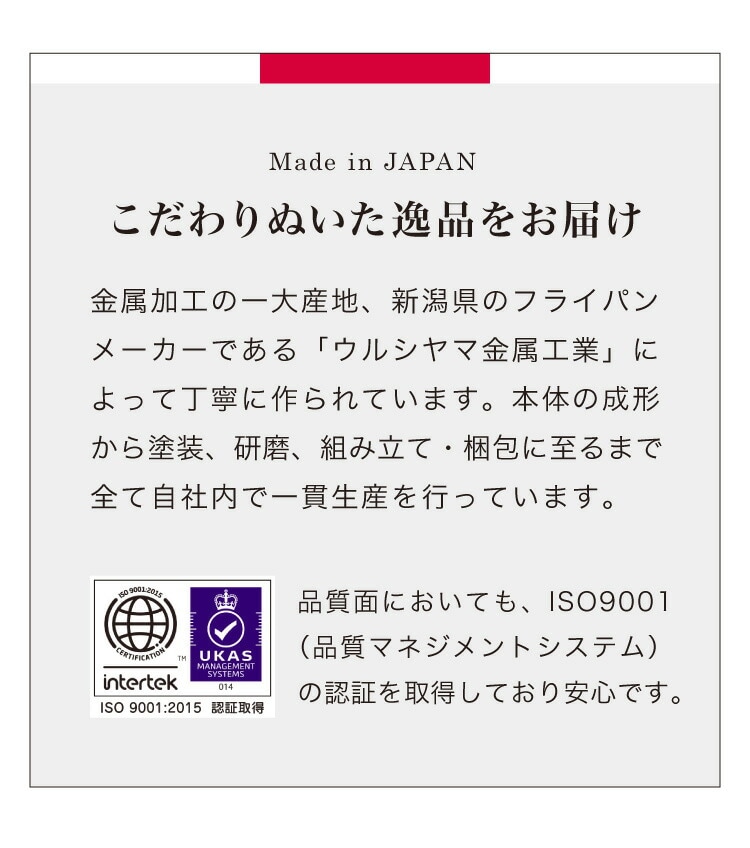 ■金属加工の一大産地、新潟県のフライパンメーカー「ウルシヤマ金属工業」によって丁寧に作られています。
