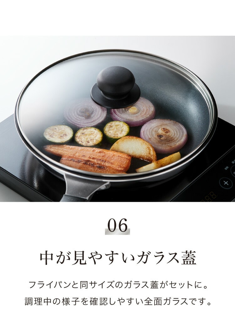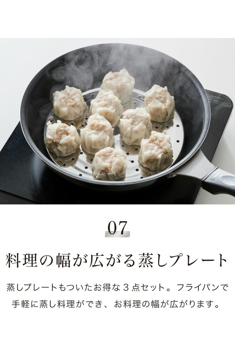 ■蒸しプレートを使うことで、蒸し鍋が無くてもフライパンで手軽に蒸し野菜などを楽しむことができます。