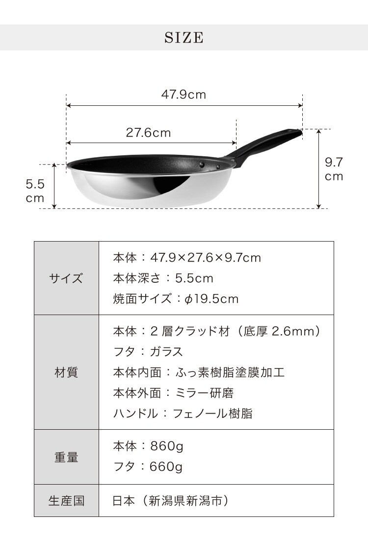 本体:2層クラッド材(底厚2.6mm)