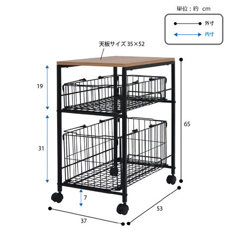 隙間収納 バスケット付き 2段 持ち運べるかご付き キャスター付き 押し入れ収納 クローゼット収納 おもちゃ収納 洗濯かご キッチンワゴン キッチン収納 プリンター台【送料無料】