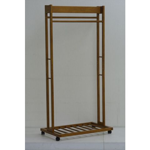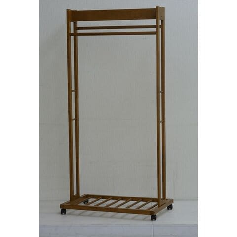 木製ダブルハンガーラック 幅80cm ハンガーラック 天然木 洋服 収納 キャスター付き【送料無料】