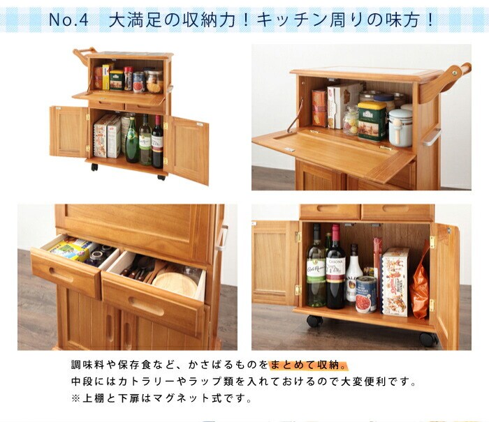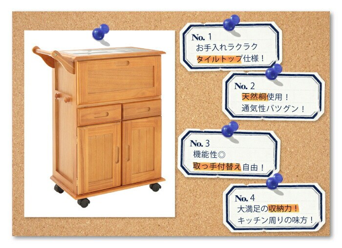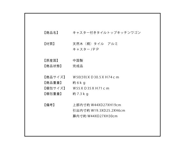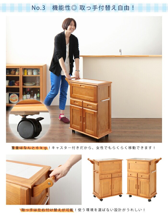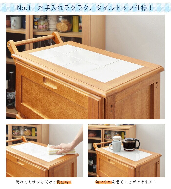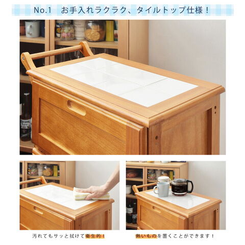 【商品名】 キャスター付きタイルトップキッチンワゴン