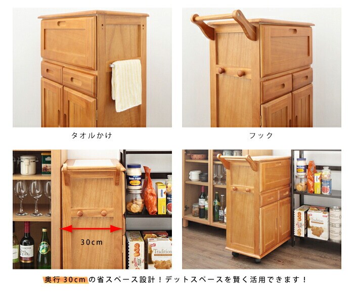 ・天板はタイル付なので熱い物も置けます。