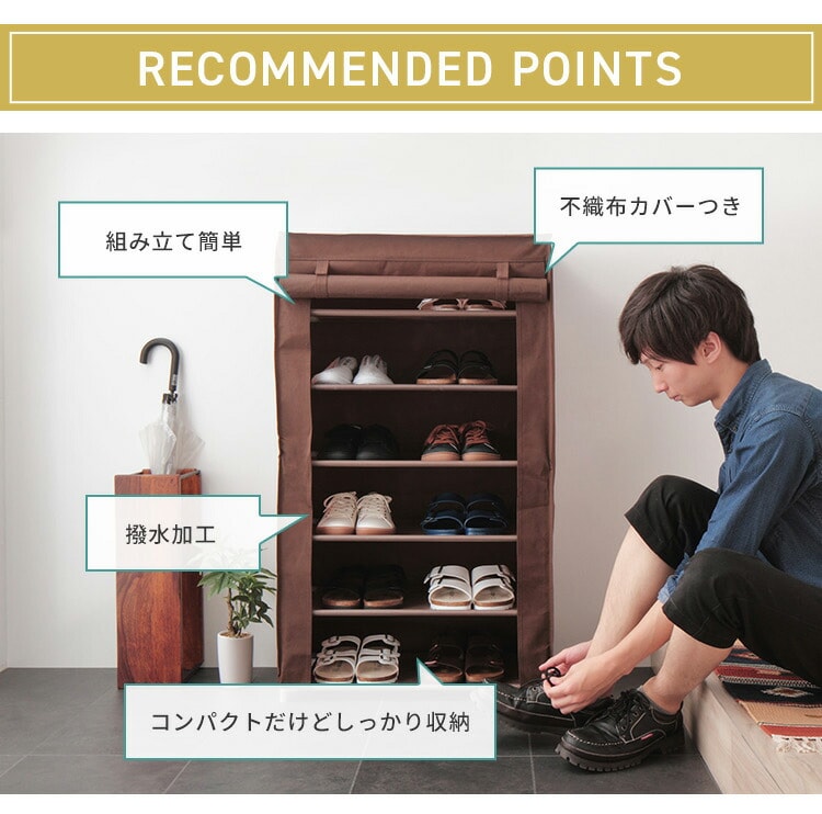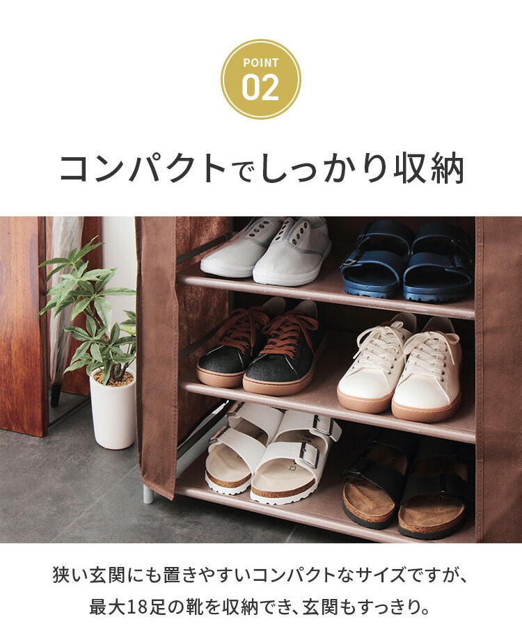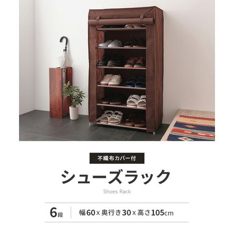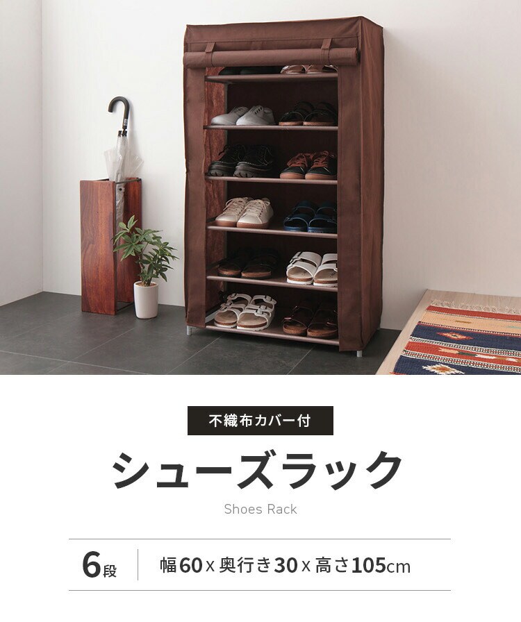 シューズラック 6段 スリム 幅60cm 省スペース 最大18足 不織布カバー付 撥水 可動棚 軽量 薄型 組立簡単 工具不要 シンプル ブラウン ロールアップ式カバー シューズボックス 下駄箱 靴入れ 玄関収納【送料無料】