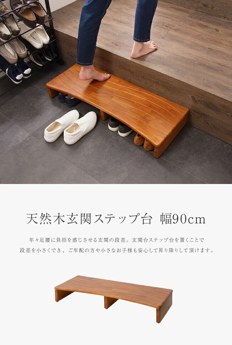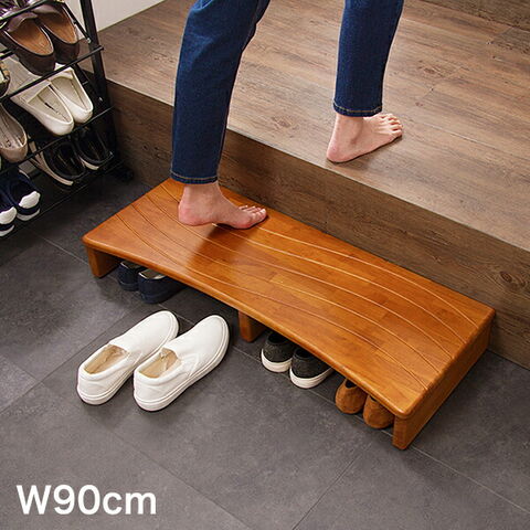 玄関台 幅90cm ウェーブ型 玄関 台 踏み台 ステップ 木製 玄関ステップ 段差 軽減 靴 昇降台 補助具 足場 完成品【送料無料】