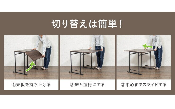 スライド式天板 折りたたみテーブル 2Way テーブル デスク 机 折りたたみ 折り畳み おりたたみ ダイニングテーブル 木製【送料無料】