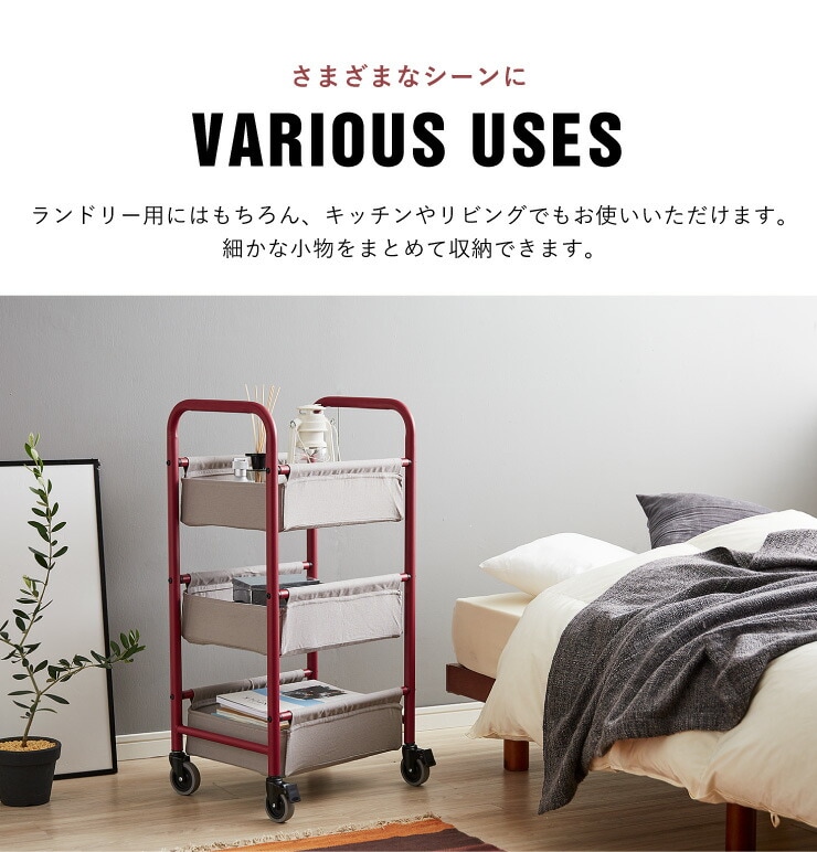 ワゴン American Laundry バスケットワゴン 3段 ランドリーワゴン シェルフ 棚 ラック ランドリーバスケット ランドリーラック【送料無料】