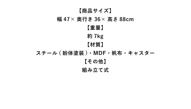 スチール(紛体塗装)・MDF・帆布・キャスター