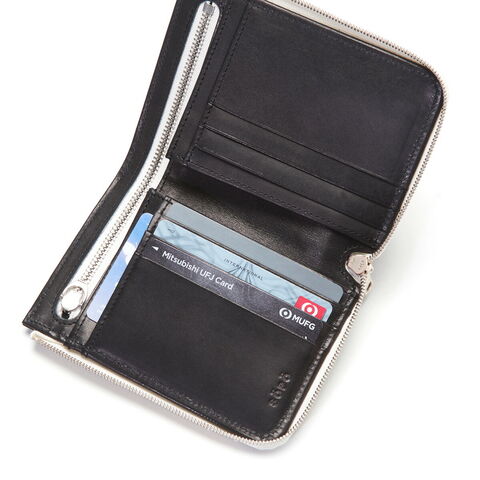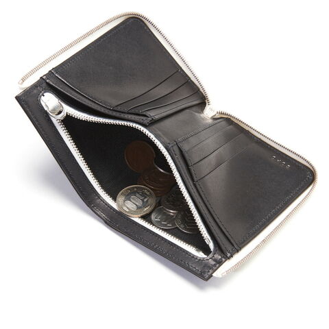 レザーカラーとあえて違う色のファスナーテープをあしらったミドルサイズの二つ折り財布は、生後半年~2年までの希少な牛革であるキップレザー製。