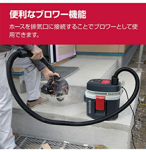 建築現場・車内等の清掃、電動工具での作業時に発生する粉じんの集じん及び床にこぼした水などの液体吸引。
