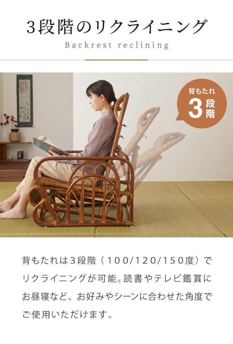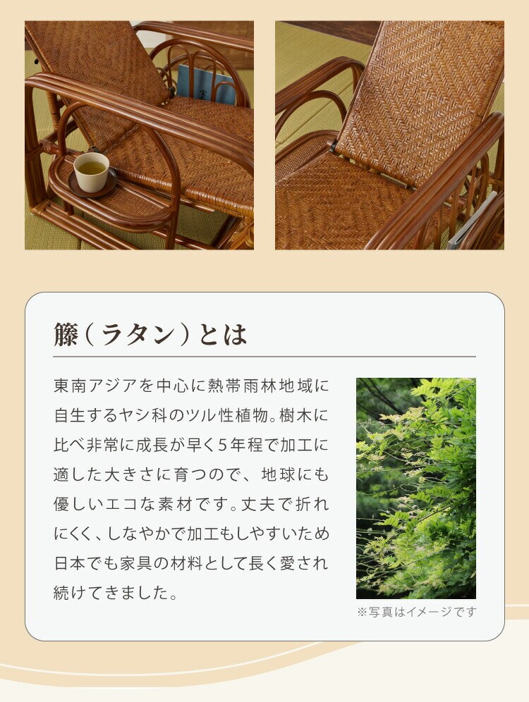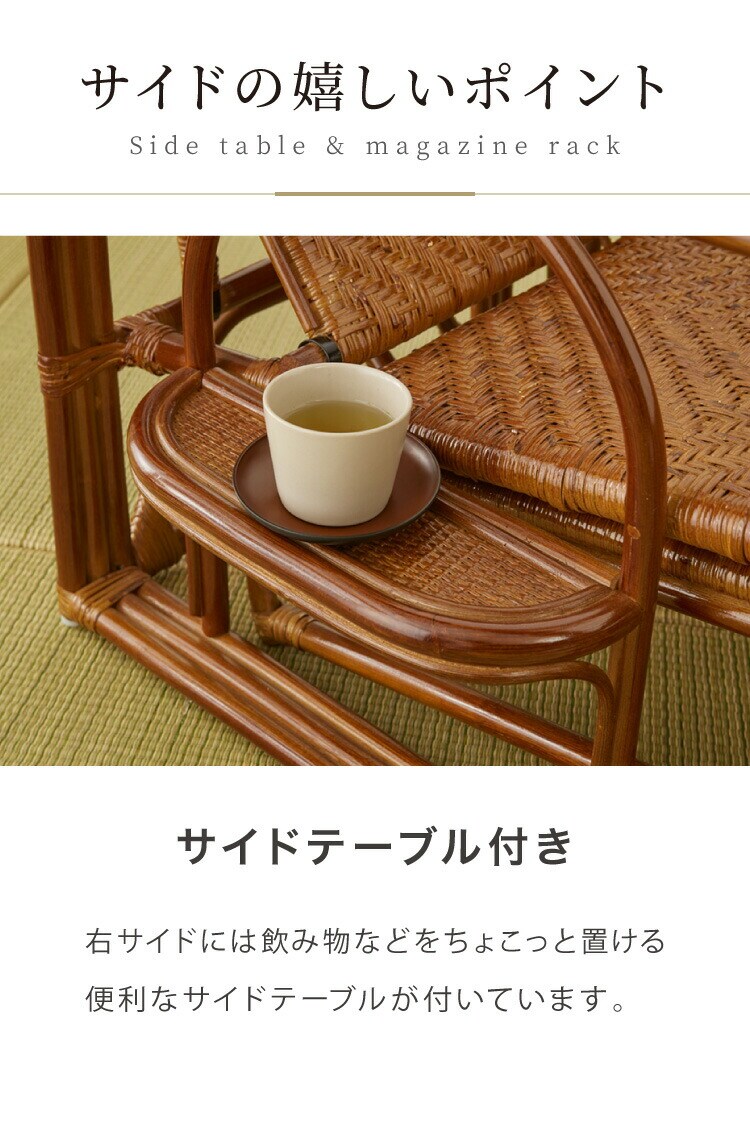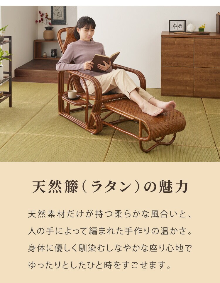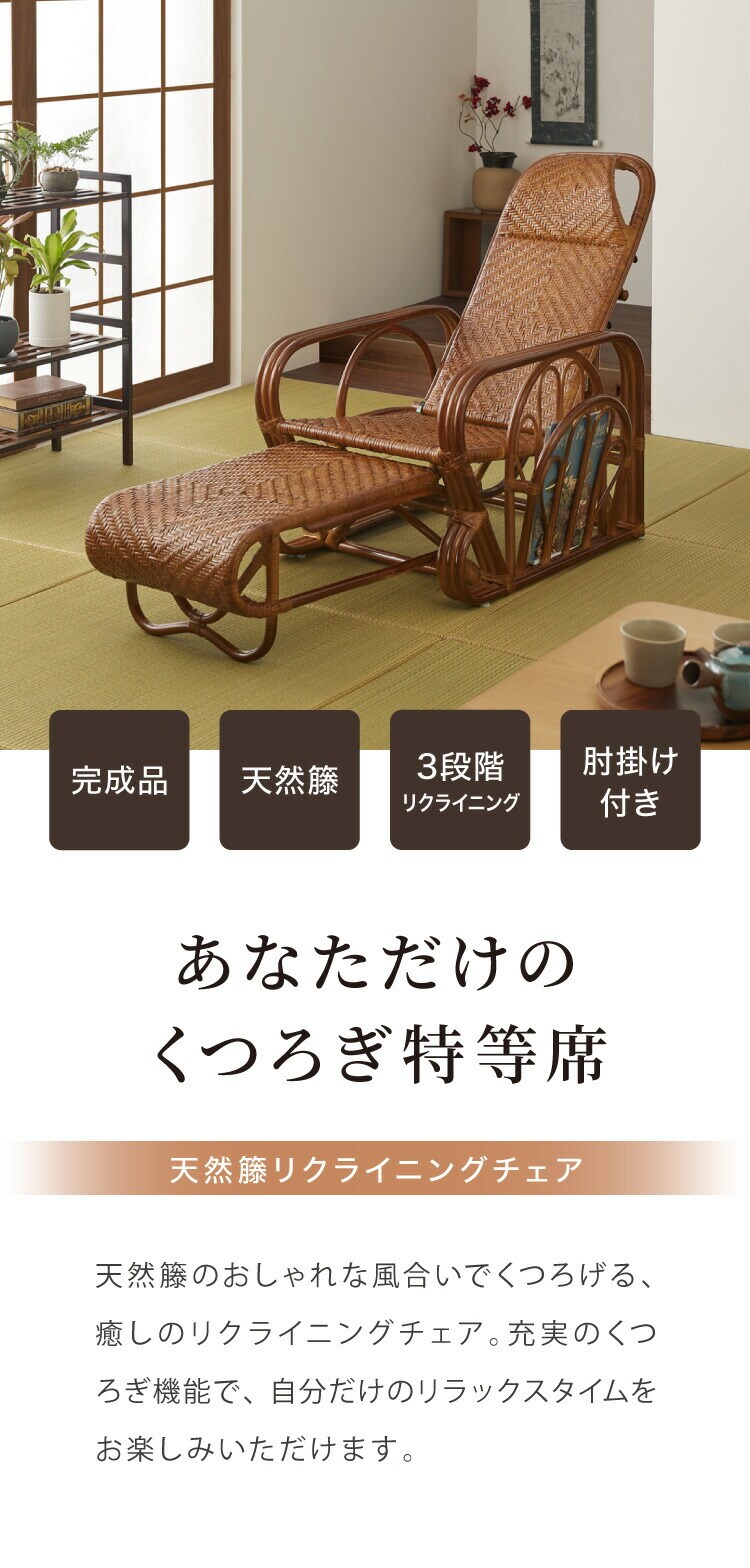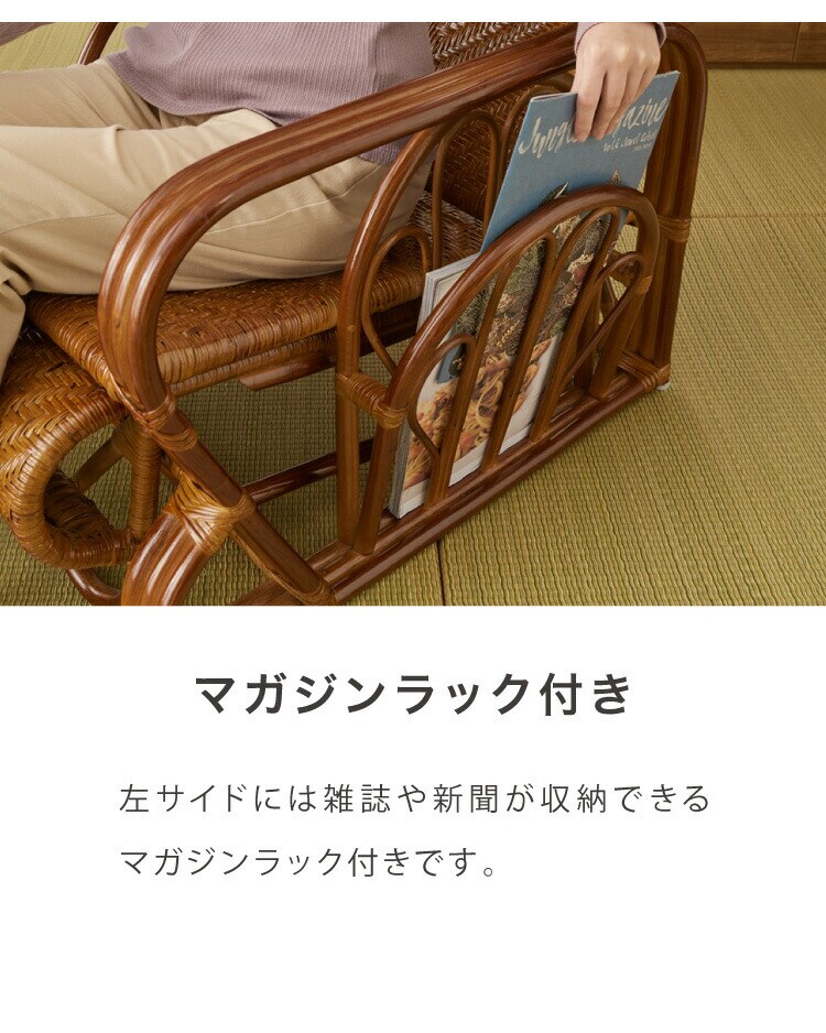 天然籐リクライニングチェア 完成品 マガジンラック サイドテーブル付 ラタン チェア 座椅子 イス 肘付き ソファ オットマン 父の日 母の日 プレゼント【送料無料】