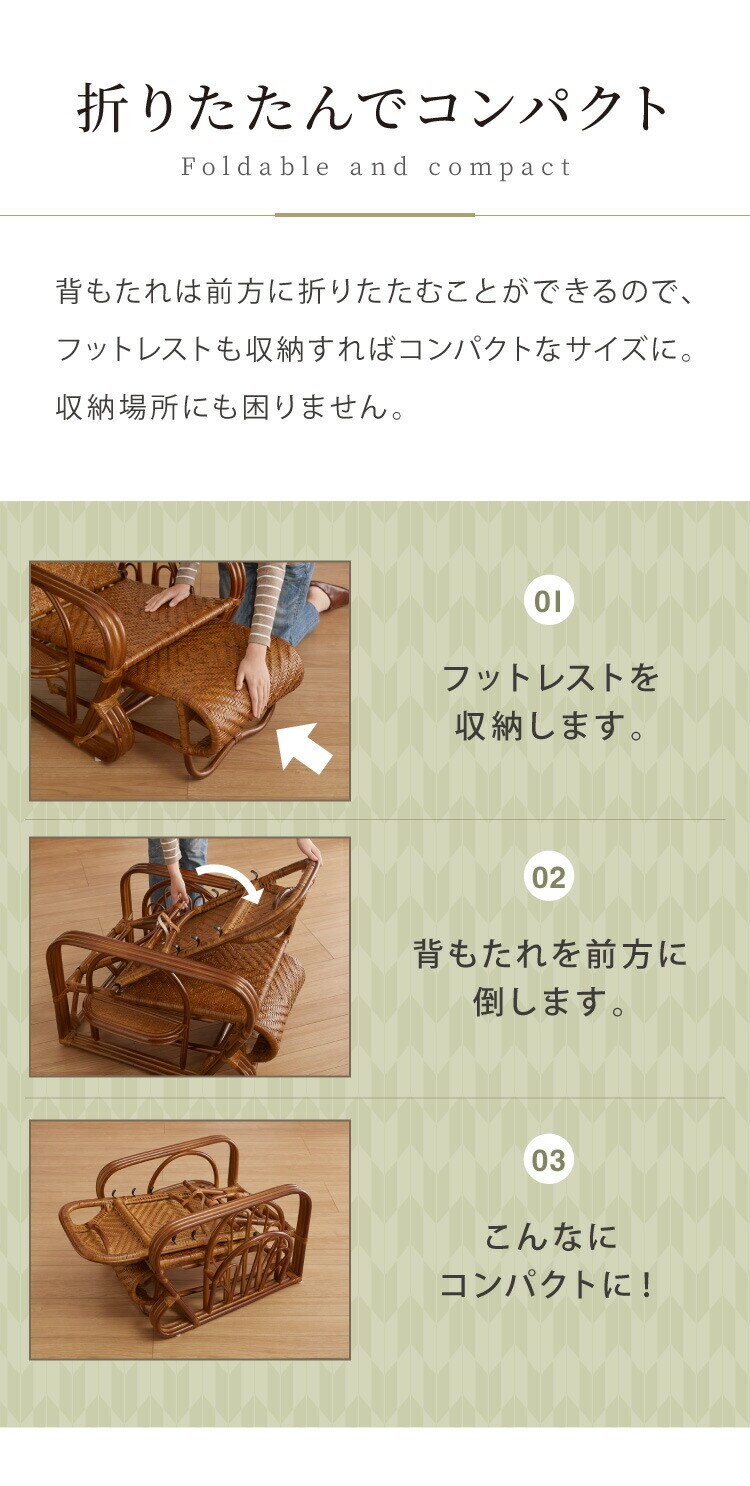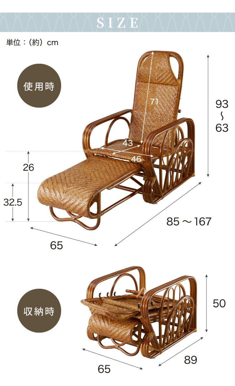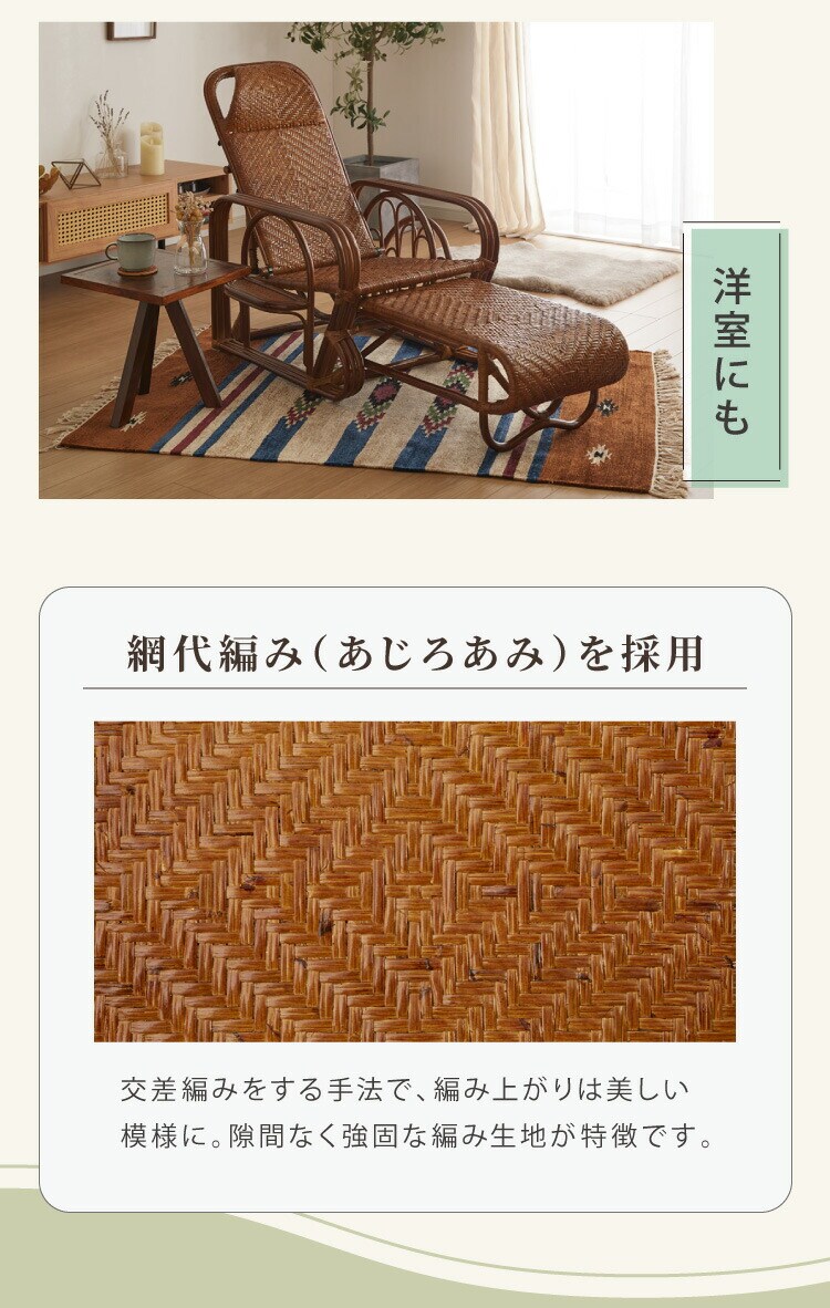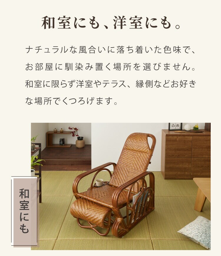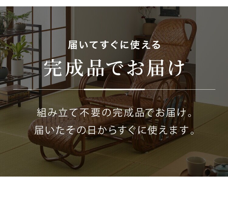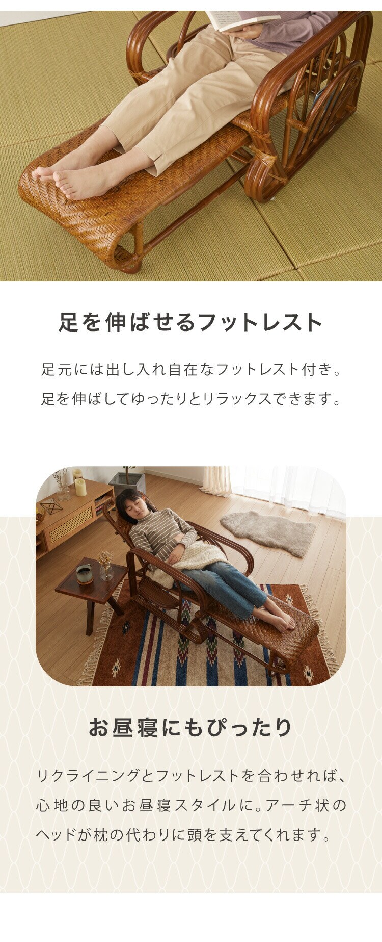 天然籐リクライニングチェア 完成品 マガジンラック サイドテーブル付 ラタン チェア 座椅子 イス 肘付き ソファ オットマン 父の日 母の日 プレゼント【送料無料】