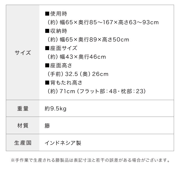 ※手作業で生産される籐製品は表記寸法と若干の誤差がある場合がございます。