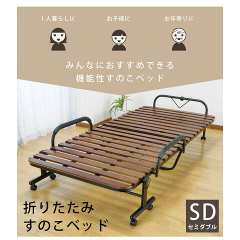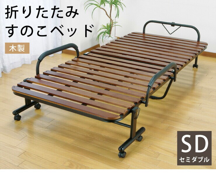 ベッド 折りたたみベッド すのこベッド 桐製 木製 すのこ 折りたたみ キャスター付き セミダブル【送料無料】