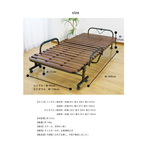 ●サイズ/ 使用時:約幅126×長さ209×高さ47cm、収納時:約幅126×奥行47×高さ109cm