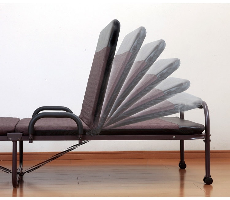 コンパクト収納できる便利なリクライニング仕様のベッド。