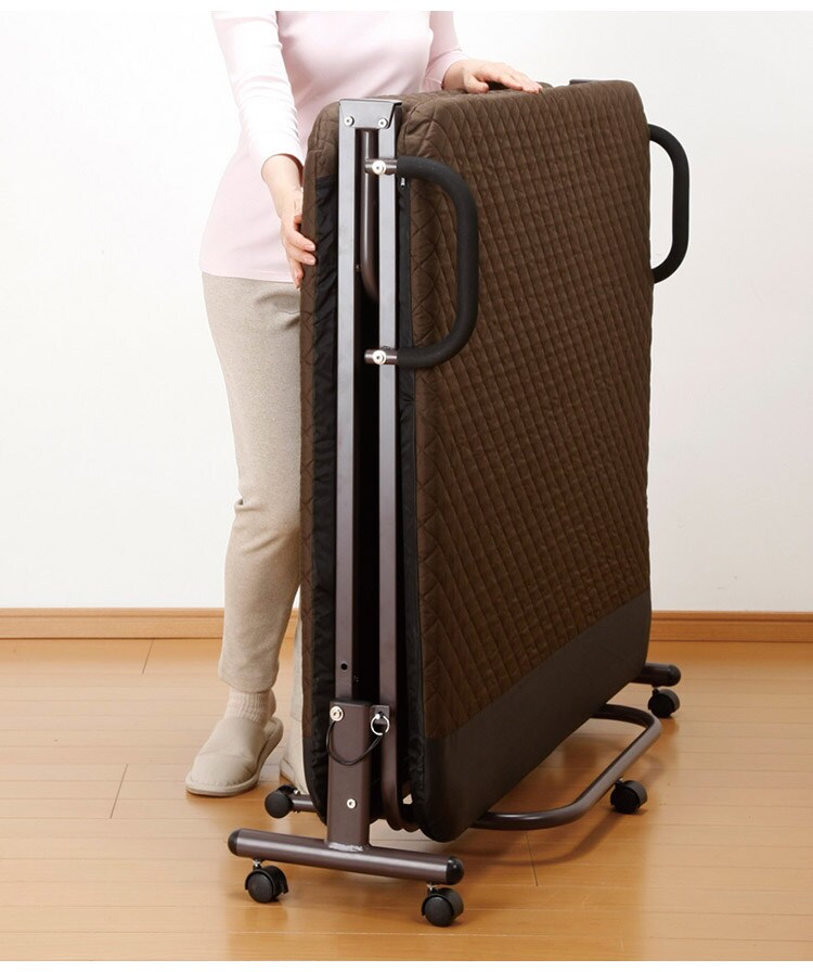 ベッド脇のアームを持ち上げるだけで、すぐに折りたためます。