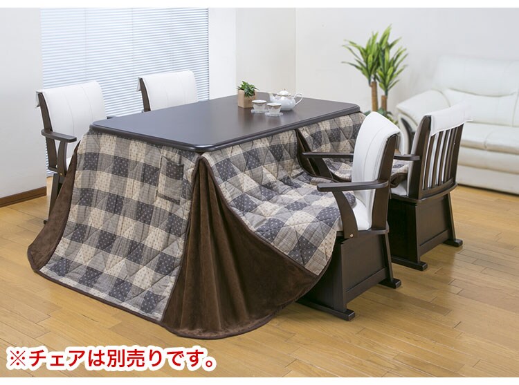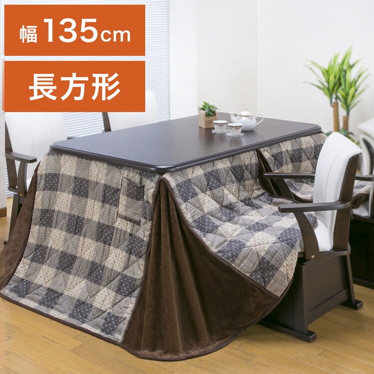 こたつテーブル、幅135cm、ダイニングテーブル、こたつ布団、セット、ハイタイプこたつ、リビングこたつ、ダイニングこたつ、食卓テーブル、机、600W薄型ファンヒーター、撥水フランネル生地、冬、あったか、リモートワーク、テレワーク、在宅勤務
