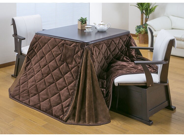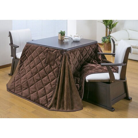 【素材】[こたつ]フレーム・脚:ラバーウッド材、天板:MD転写[布団]表地/しじら折り:綿100%、フランネル:ポリエステル100%、中綿:ポリエステル100%、コーナー部:ポリエステル100%[チェア]フレーム:天然木ラバーウッド材、座面:PVC・ウレタンフォーム