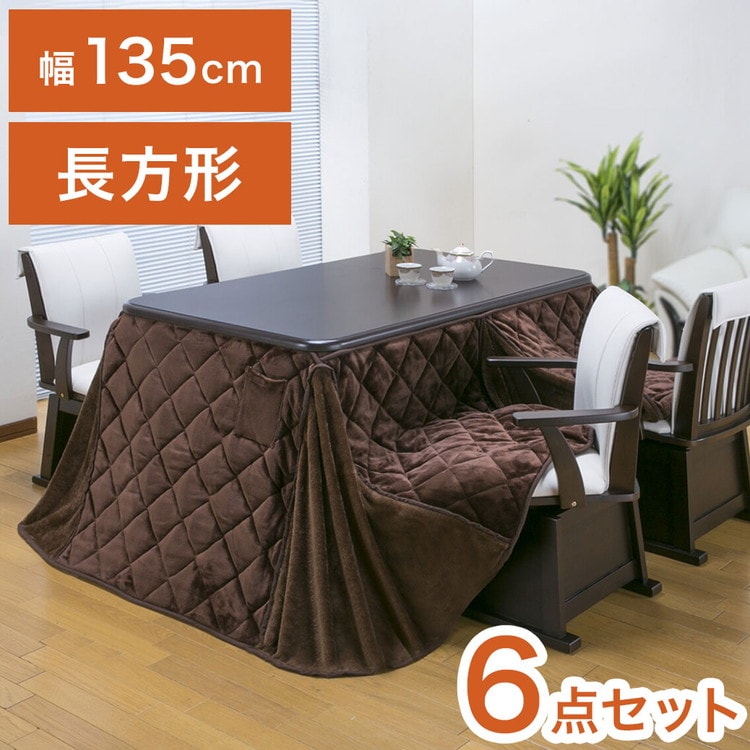 ダイニングこたつ 6点セット 4人掛け テーブル 布団 チェア4脚 135×80cm 4人用 600W薄型ファンヒーター 撥水フランネル生地 冬 あったか【送料無料】