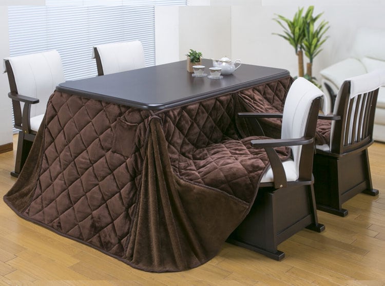 ■冬はこたつ、布団を外せば春~秋はダイニングテーブルとしてオールシーズン使えるラウンドこたつ。