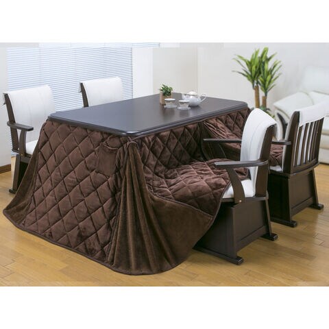 こたつテーブル、幅135cm、ダイニングテーブル、こたつ布団、こたつチェア、こたつチェアー、イス、椅子、360度回転式、ダイニングチェア、ダイニングセット、ハイタイプこたつ、リビングこたつ、ダイニングこたつ、食卓テーブル、机、600W薄型ファンヒーター、撥水フランネル生地、冬、あったか、リモートワーク、テレワーク、在宅勤務