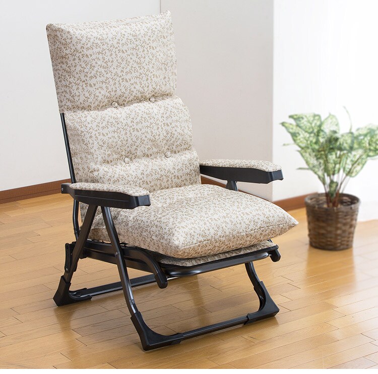 ■肘掛け部を手前に上げれば背もたれのリクライニングが可能。