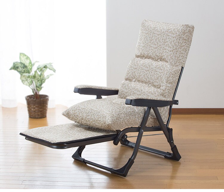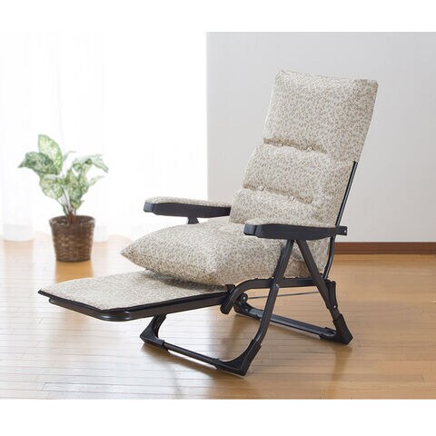 ■サイズ:使用時:(約)幅60×奥行78~120(フットレストオープン時164)×高さ61~102cm、収納時:(約)幅60×奥行50×高さ90cm、座面高:(約)42cm