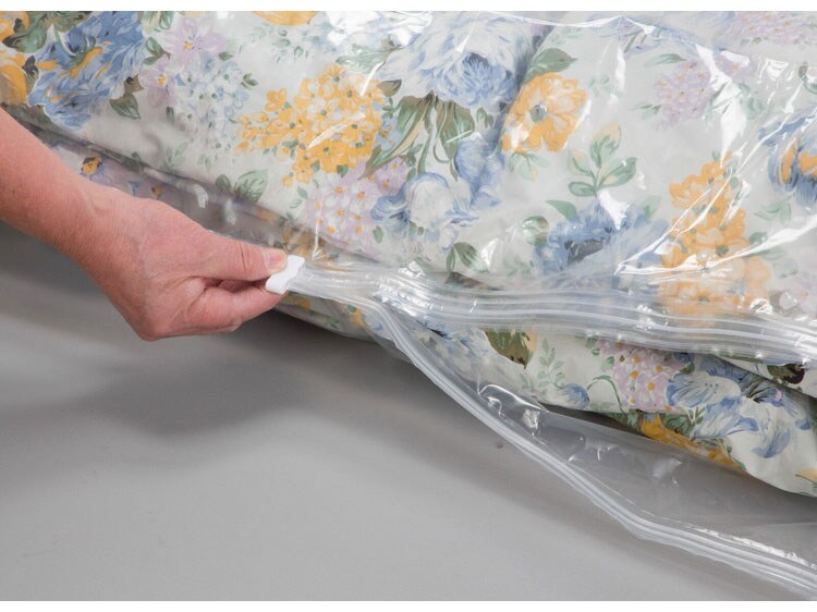 専用吸引機付きだから、掃除機を使わずにラクラク吸引&圧縮!二重チャックを採用しているので、空気漏れを防ぎ、密封性に優れています。