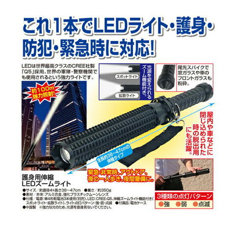 LEDズームライト 護身用 伸縮 LEDライト 防犯ライト 防災ライト 防犯 防災 火災 事件防止 犯罪防止 ライト 台風 地震 対策【送料無料】