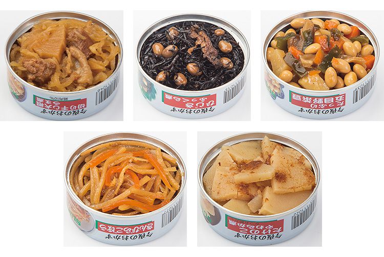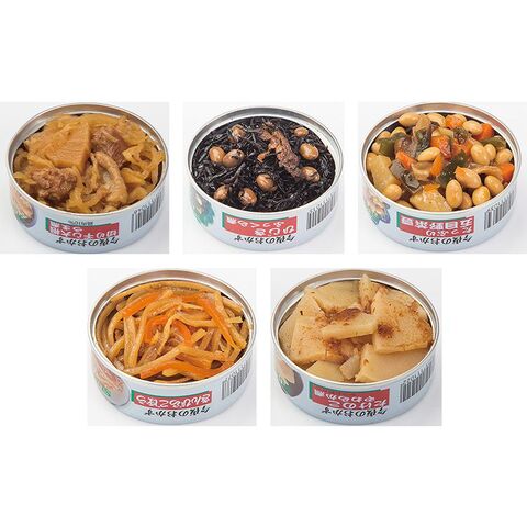 各70g(たっぷり五目野菜豆・ひじきふっくら煮・切り干し大根うま煮・たけのこやわらか煮)、50g(きんぴらごぼう)×各3缶