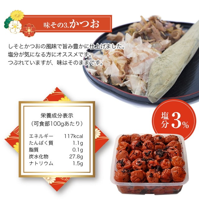 つぶれ梅かつお 塩分3% 1.6kg 紀州南高梅 800g×2パック【送料無料】