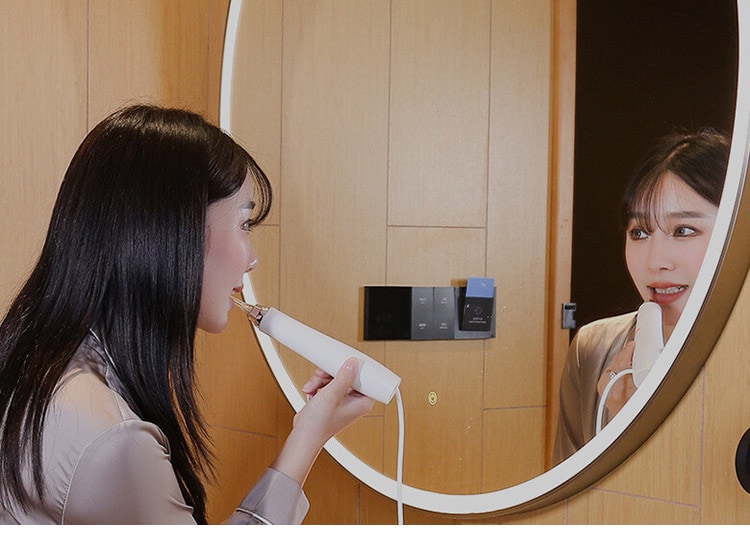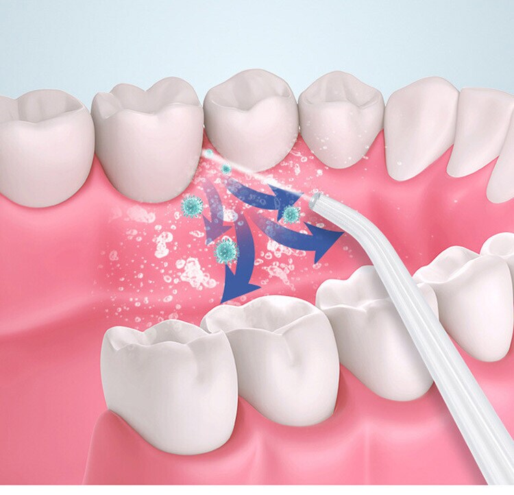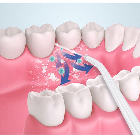 タンクが無いので軽くて扱いやすい。歯ブラシでは取り切れない汚れを高速ジェット水流で取り除きます。