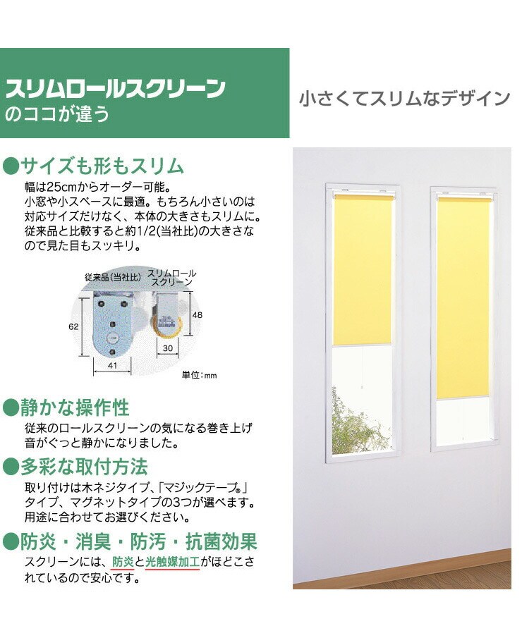ビス止めタイプ スリムロールスクリーン 60×180cm 防炎 消臭 防汚 抗菌【送料無料】