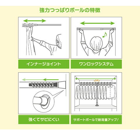 120cm-200cmまで伸縮可能。耐荷重約14kg。