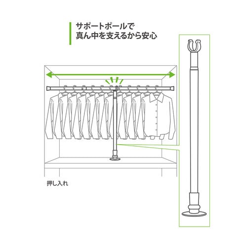 つっぱりサポートポール 大LL 170~300cm 支柱 中間サポート 突っ張り棒 アルミ製 丈夫 賃貸 物干し つっぱり式 のれん 棒 テンション 伸縮 マンション ポール【送料無料】