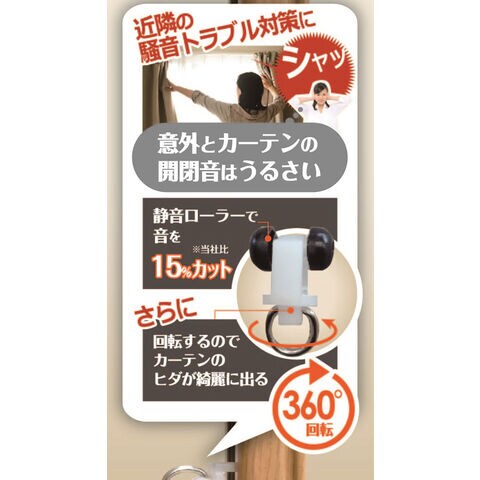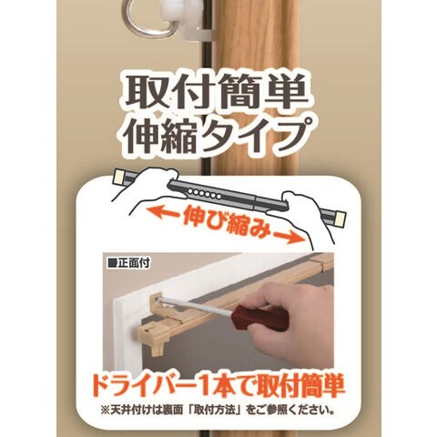 静音タイプのカーテンレール。静音ローラーで音を約15%カット(当社比)ドライバー1本で簡単に取付ができます。