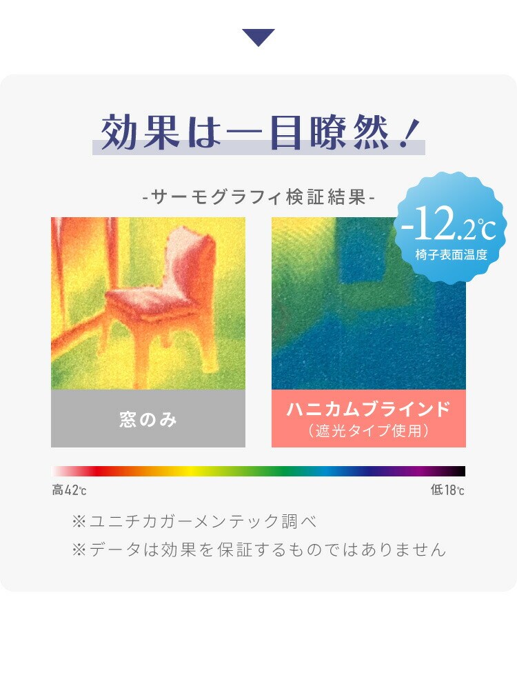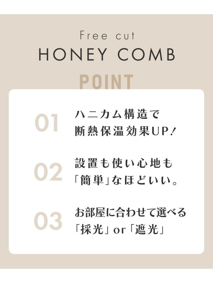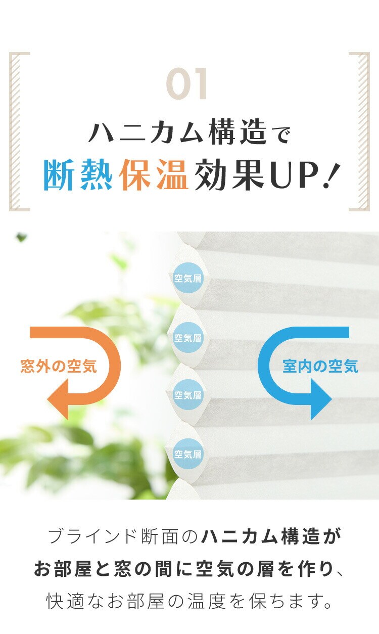 ハニカム構造により夏は断熱、冬は保温効果を発揮し、お部屋の冷暖房効率を高めることができます。