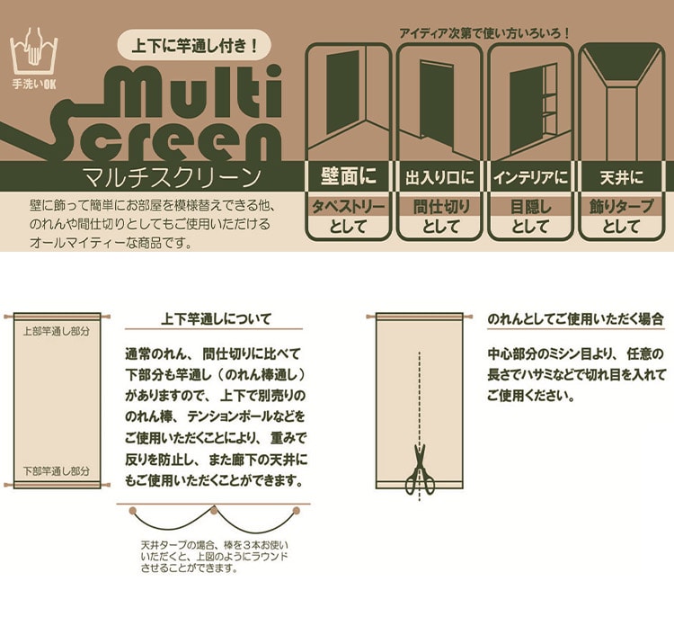 マルチスクリーン 85×200cm 手洗い可能 間仕切り 目隠し おしゃれ タペストリー 飾りタープ リビング 脱衣所 キッチン 玄関 壁掛け 天井【送料無料】