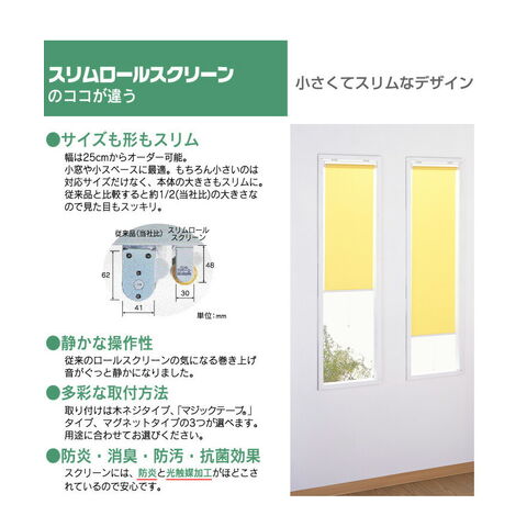 マグネットタイプ スリムロールスクリーン 60×180cm 防炎 消臭 防汚 抗菌【送料無料】