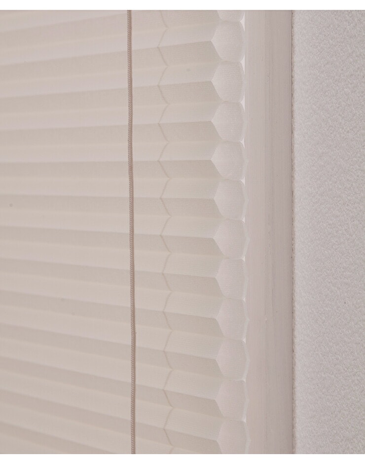 ハニカム構造が窓と部屋の間に空気層を作ることにより外気や外からの温度を跳ねかえします。