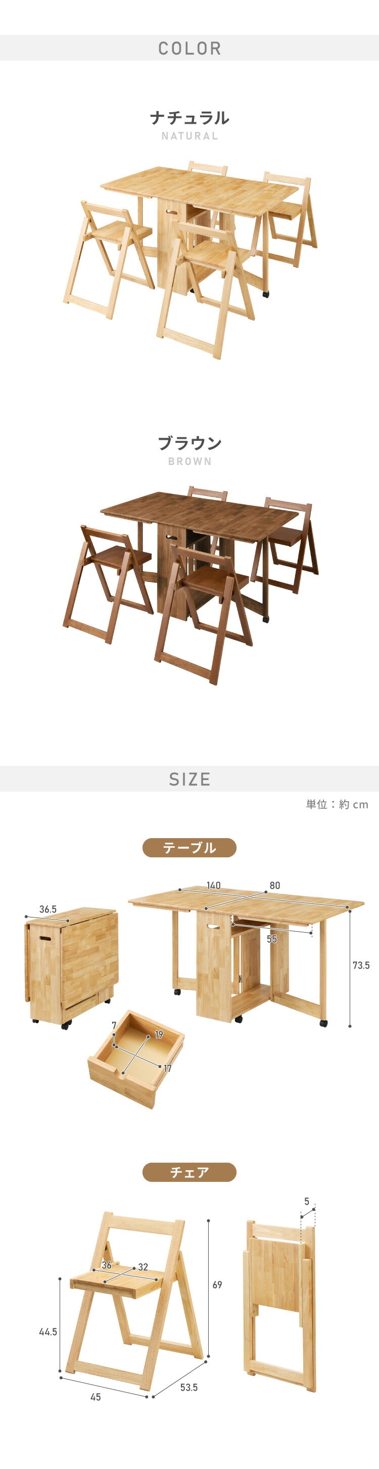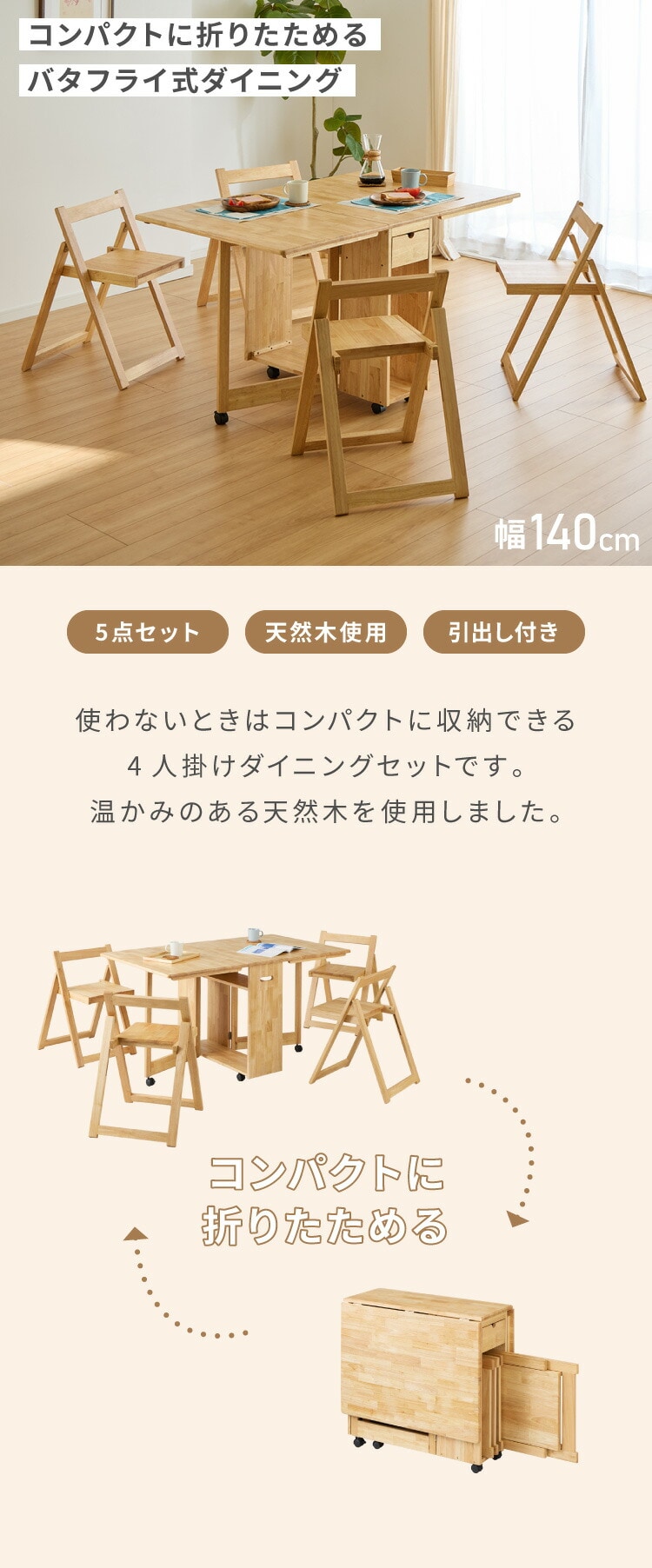折りたたみ可能 ダイニングセット 140×80cm 5点セット 4人掛け ダイニングチェア 折りたたみ 天板 拡張式 ダイニングテーブル セット ダイニング テーブル カフェテーブル 食卓テーブル 天然木(代引不可)【送料無料】
