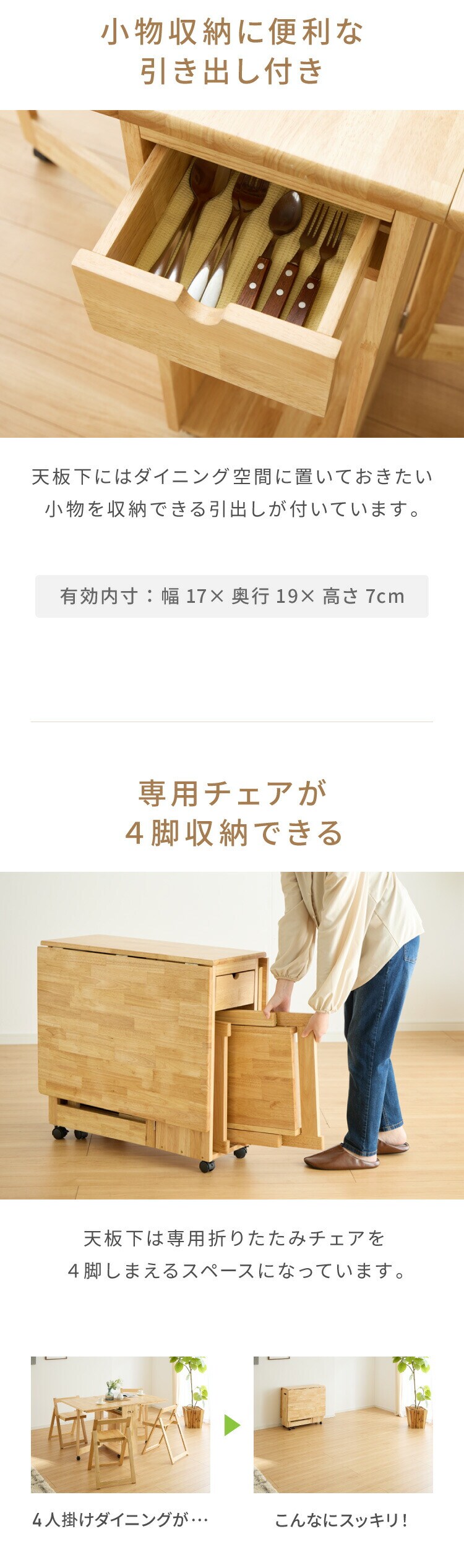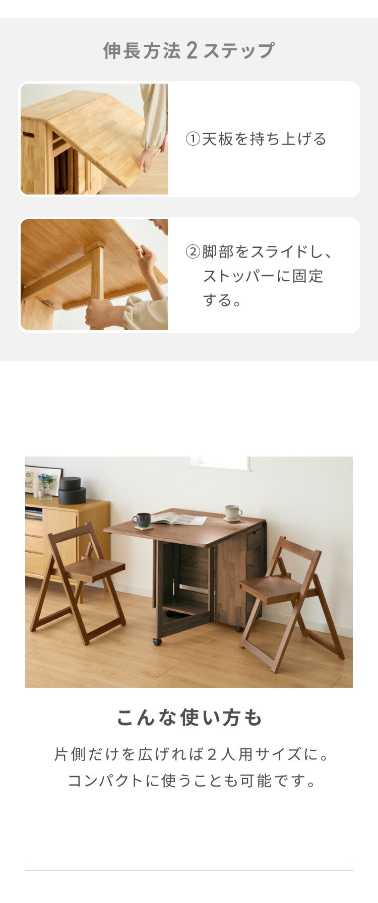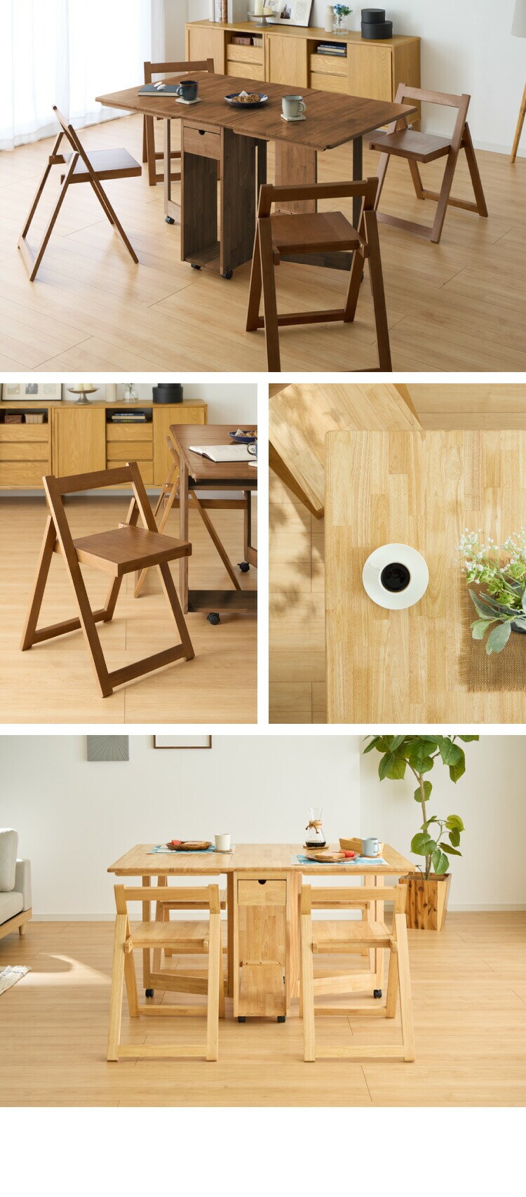 ・使わないときはコンパクトに収納できるダイニングセットです。