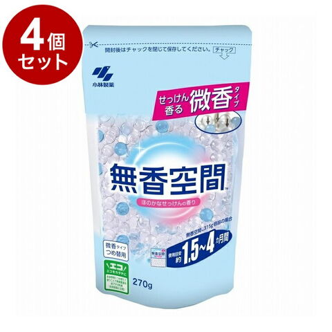 【単品4個セット】 小林製薬 無香空間 ほのかなせっけんの香り つめ替用 270g【ポイント10倍】