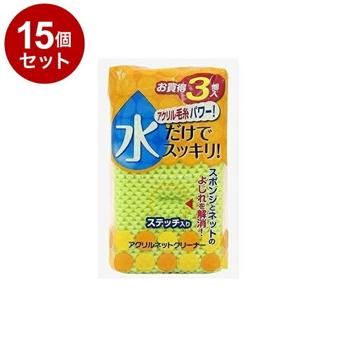 【まとめ買い 単品15個セット】 東和産業 スポンジ アクリル ネットクリーナー 3個入り【ポイント10倍】 【送料無料】